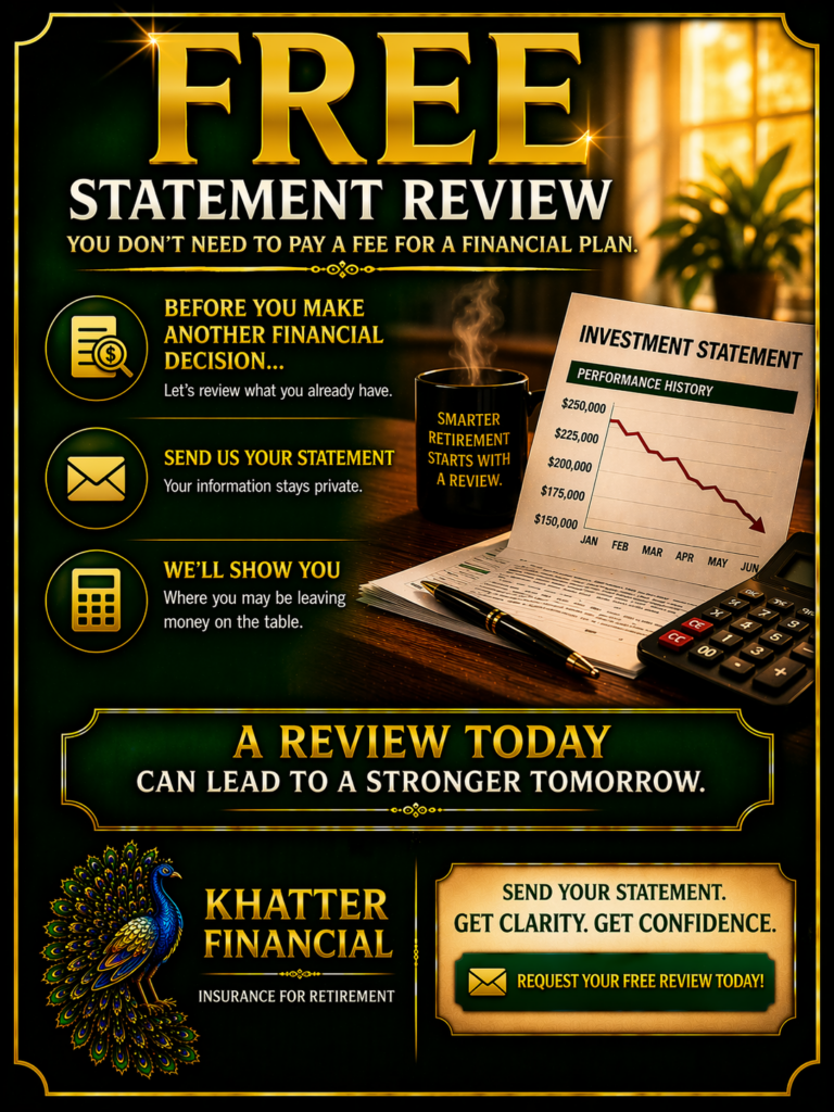 Planning for retirement is vital but can be complicated, intimidating while market uncertainty and the volatility of unpredictable losses with money you cannot afford to lose at this point in your life may cause stress and anxiety. Your retirement is not a task you complete once and cross off the to-do list, it’s a well-deserved stage of your life that you’ve been looking forward to and preparing for throughout your working years. Do you know what your savings and investments will translate to in retirement income? Are you satisfied with the present rate of return on your investments and are you on track to an enjoyable retirement? What is an amount you think would allow you to live comfortably throughout the course/ remainder ⛵️ of your retirement? When do you plan to use the money and how would you live differently if your predictable income covered all of your essential living expenses and then some? Retirement should be a time for you to reap the benefits of your lifelong efforts and we can structure the perfect contract just for you. At Khatter Financial 🦚 we know retirement isn’t an ending – it’s a beginning, a new chapter 📙 for you to live out the future you have always envisioned.